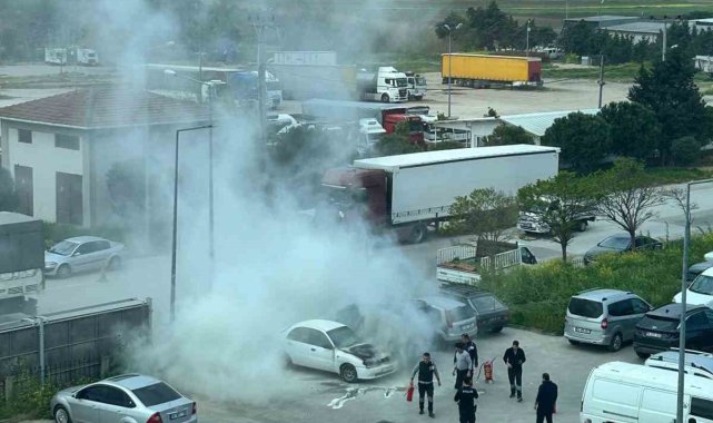 Bursa'nın Karacabey ilçesi Karacabey Devlet Hastanesi'nin otoparkında park halinde bulunan bir otomobil, henüz belirlenemeyen bir sebeple motor kısmından yanmaya başladı. Yangın, itfaiye ekiplerinin müdahalesiyle söndürülürken, araçta büyük çapta maddi hasar oluştu.