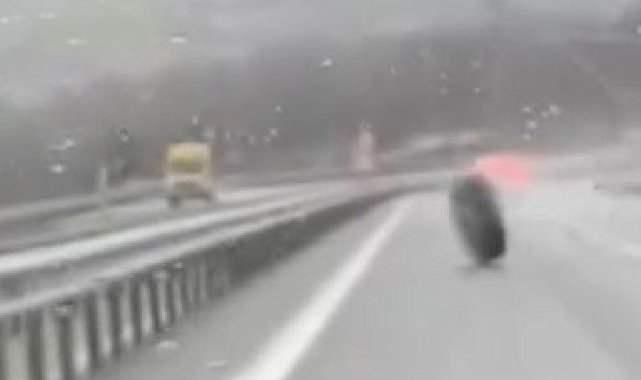 Otoyolda hafriyat kamyonundan fırlayan lastik böyle ilerledi