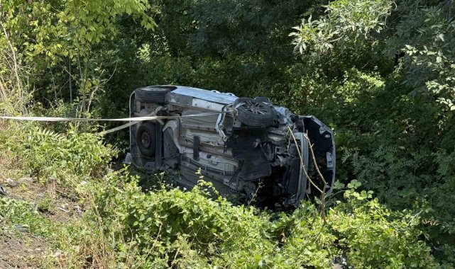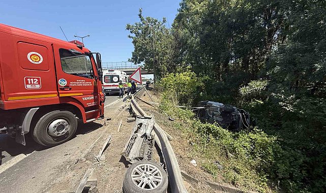 Otoyolda kontrolden çıkan hafif ticari araç şarampole devrildi: 6 hafif yaralı