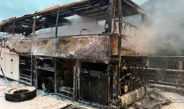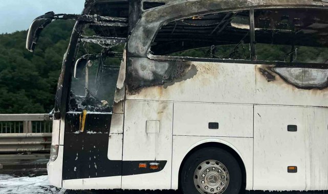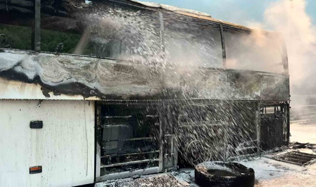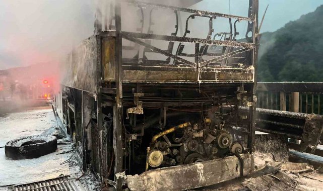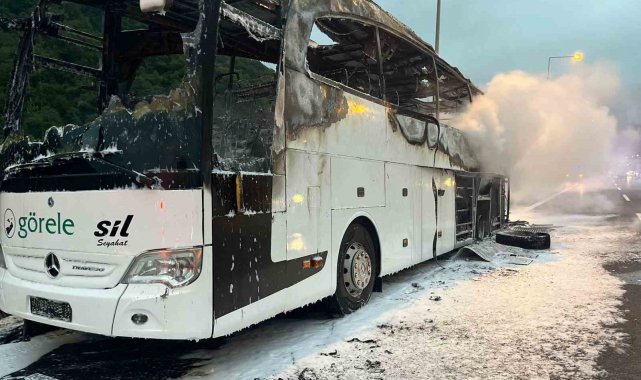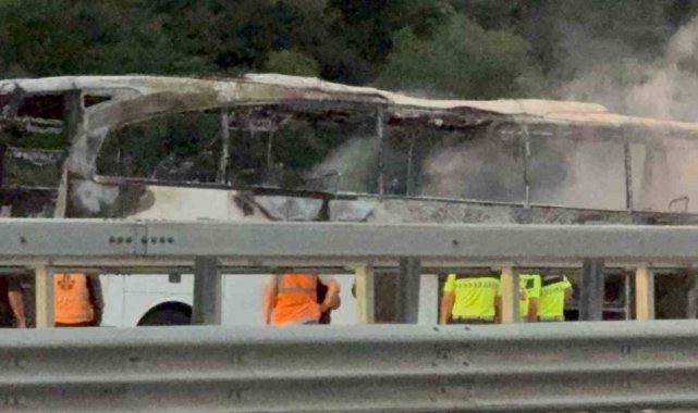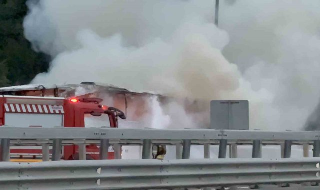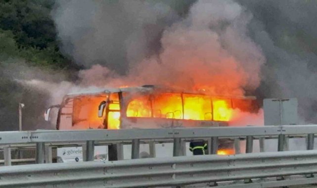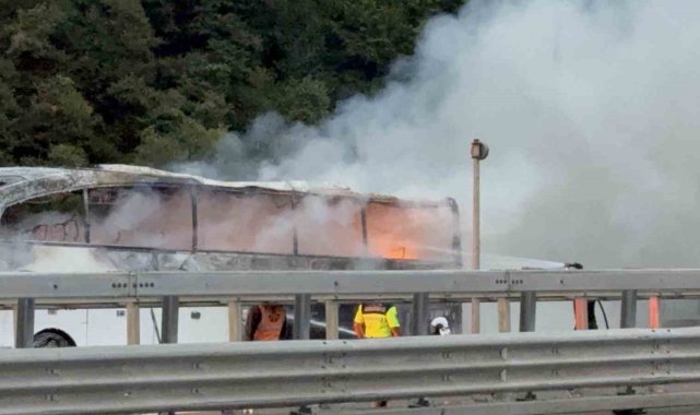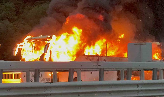 Otoyolda otobüs alev alev yandı