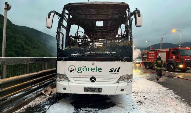 Anadolu Otoyolu Düzce mevkinde şehirlerarası yolcu otobüsü alev alev yandı, İstanbul istikameti trafiğe kapandı.Olay, Anadolu Otoyolu Ekrem Özdemir viyadüğü üzerinde meydana geldi. Alınan bilgilere göre, Giresun'un Görele ilçesinden İstanbul'a sefere çıkan ve içerisinde 38 yolcusu bulunan Görele Asil Seyahat'e ait Dursun Ali H.'nin kullandığı 20 AOR 002 plakalı Mercedes marka otobüs, Ekrem Özdemir Viyadüğü üzerinde yanmaya başladı. Alevlerin çıktığını gören sürücü, aracı emniyet şeridine çekerek, yolcuları otobüsten indirdi. Kısa süre içerisinde otobüs alev topuna dönerken bölgeye itfaiye ekipleri sevk edildi. Yangın söndürme çalışmaları çerçevesinde yol trafiğe kapatılırken, yangın yaklaşık 1 saatlik çalışmanın ardından söndürüldü. Yangında otobüs tamamen kullanılamaz hale gelirken, alevler sebebi ile kapanan yolda kilometrelerce araç kuyruğu oluştu. Otobüsteki yangının söndürülmesinin ardından yol tek şeritten trafiğe açıldı. Olayla ilgili inceleme başlatıldı.