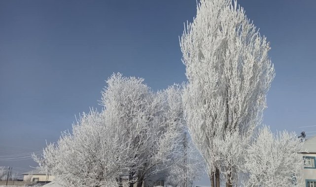 Özalp ve Saray buz kesti, ağaçlar kırağı tuttu