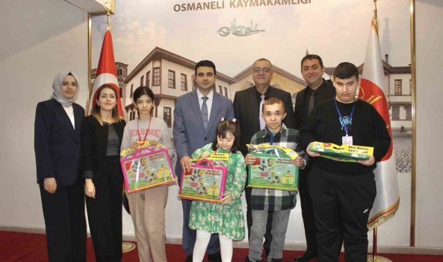 BİLECİK (İHA) – Bilecik'in Osmaneli Kaymakamı Abdüssamed Kılıç, özel çocuklardan anlamlı bir hediye aldı.BİL-EN programı kapsamında Cumhuriyet Ortaokulu öğrencileri; Tuğçe, Asiye, Yusuf ve Osman "El Emeği, Göz Nuru" adlı dönem sonu çalışmalarını ve özel olarak kendi elleriyle yaptıkları Türkiye haritası şeklinde çerçeveyi Kaymakam Abdüssamed Kılıç'a takdim ettiler. Öğrencilerin ziyaretlerinde Milli Eğitim Müdürü Erhan Döş, Cumhuriyet Ortaokulu Müdürü Mehmet Emin Kobak ve öğretmenleri Nurşah Demirbaş ile Beyza Dere eşlik etti.Özel ihtiyaçlı öğrenciler, kentte gerçekleştirilen BİL-EN, Yetenek Avcıları programı kapsamında "El Emeği, Göz Nuru" adlı proje çalışmalarını başarılı bir şekilde oluşturdular.Kaymakam Kılıç, ziyarette öğrencilerle sohbet gerçekleştirdi. Öğrencilerden aldığı hediye ile duygulandığını ifade eden Kılıç, daha sonrasında ise bu jest karşısında karne hediyesi olarak öğrencilere eğitim seti hediye etti.