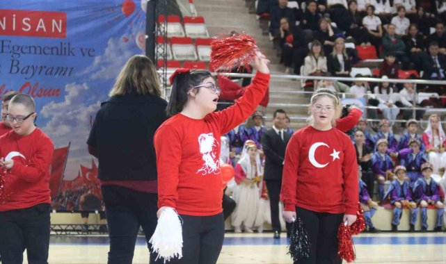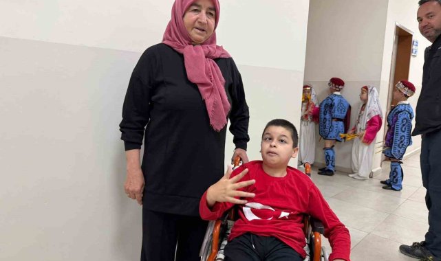 Eskişehir'de düzenlenen 23 Nisan Ulusal Egemenlik ve Çocuk Bayramı kutlamalarında yüzde 60 engelli torununun gösterisine onu hazırlayan ve sahne kenarında heyecanı göze çarpan anneanne Ayten Şen, "Ben de çocuklar gibi 23 Nisan yaşadım şu anda, çocuk oldum" dedi.Tüm yurtta olduğu gibi Eskişehir'de 23 Nisan Ulusal Egemenlik ve Çocuk Bayramı Yenikent Şehit Anıl Gül Spor Salonu'nda kutlandı. Özkan Halaç Özel Eğitim Meslek Okulu öğrencileri de Eskişehirspor marşı ile yaptıkları gösteri ile tribünlerden büyük beğeni topladı. 13 yaşındaki, yüzde 60 engelli torununun sürekli okulda yanında olduğunu söyleyen, Yiğit Berat Şen'in anneannesi Ayten Şen'in heyecanı gözlerden kaçmadı. Sahne kenarında torununun figürlerini hatırlatan anneannenin özverisi takdir topladı. Yaşadığı mutluluk hakkında "Ben de çocuklar gibi 23 Nisan yaşadım şu anda, çocuk oldum" diyerek özetledi."İki gündür de sürekli bununla uğraşıyoruz"Yapılan gösteriye torununu hazırladığını söyleyen ve emeği geçen öğretmelere teşekkür eden Ayten Şen, "Biz 15 gündür hazırlanıyorduk. İki gündür de sürekli bununla uğraşıyoruz. Ben anneanneyim, torunum. Annesi çalışıyor, baba yok. Ben anneanne olduğum için çocuğumla okula her gün akşam sabah gidip geliyorum. Sabahtan akşama kadar oradayım. Etkinlikleri de görüyorum, her şeyi görüyorum. Ben de çocuklar gibi 23 Nisan yaşadım şu anda, çocuk oldum. Öğretmenler öğretiyor, iki gündür provaya geldik, iki üç günlük iş bu. Öğretmenler de çok iyi, her öğretmen bu eğitimi veremez" dedi.