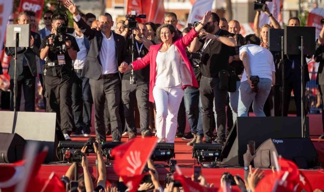 İzmir'de CHP Genel Başkanı Özgür Özel'in katılımıyla 'Millet İradesine Sahip Çıkıyor' mitingi düzenlendi. Özel'in 2 milyon kişinin katıldığını söylediği mitinge, emniyet kaynaklarından alınan rakama göre 70 bin kişinin katıldığı öğrenildi.CHP Genel Başkanı Özgür Özel'in çağrısıyla her hafta bir şehirde düzenlenmesi planlanan "demokrasi mitingleri" kapsamında "Millet İradesine Sahip Çıkıyor" sloganıyla Gündoğdu Meydanı'nda miting düzenlendi. Mitinge katılmak için vatandaşlar Kordon'a akın etti. Miting alanındaki giriş noktalarında emniyet görevlilerinin sıkı arama yaptığı görüldü. Mitingde CHP Genel Başkanı Özgür Özel, partinin genel başkan yardımcıları, milletvekilleri, il ve ilçe başkanları, belediye başkanları, partililer, çok sayıda vatandaş yer alırken, Ekrem İmamoğlu'nun eşi Dilek İmamoğlu da katıldı. Mitingde DEVA Partisi'nden İzmir Milletvekili seçilen ve geçtiğimiz ay partisinden istifa ederek Cumhuriyet Halk Partisi'ne (CHP) katılan Seda Kaya Ösen'e rozeti Genel Başkan Özgür Özel tarafından takıldı.Terörsüz Türkiye açıklamasıMitingde konuşma yapan Özgür Özel, "Biz 86 milyonun barışını, kardeşliğini savunan bir partiyiz. Birileri son dönemde 'Terörsüz Türkiye'ye ne diyorsunuz?' diyorlar. CHP her zaman teröre karşı olmuştur. Ama aynı zamanda eşit yurttaşlığı savunmuştur. Bunun için de eksik olan yasaların çıkarılmasını savunmuştur. 22 Ekim 2024'te bu mesele için Mecliste grup kurulmasını önermiştik. O gün demokrasi demeyeceksin, Kürt sorunu demeyeceksin diyorlardı. Biz terörün bitmesini savunurken, illa ki Meclis dedik, şeffaflık dedik. Şehit ailelerinin gözünün içine bakamayacağımız bir formülün içinde olmayız dedik. Bize saldıranlar nihayet dün komisyon teklifi açıklıyorlar. Bir siyasi lider koskoca Meclise istikamet dayatmayacak ancak şeffaf bir zemine oturtmaları olumludur. Elbette terörsüz Türkiye Türk'ün de, Kürt'ün de, Pomak'ın da yüzünü güldürür. Bunun için tam bir demokrasi için mücadele etmeliyiz. Bunun için terörsüz ve demokratik bir Türkiye komisyonu kurulmalıdır. Artık antidemokratik uygulamalardan dönülmelidir. Artık Ekrem Başkan ve arkadaşlarımız tutuksuz yargılanmalı, Selahattin Demirtaş, Figen Yüksekdağ ve Ümit Özdağ serbest bırakılmalı, Can Atalay, Tayfun Kahraman ve Buğra Gökce serbest bırakılmalıdır. Kayyum atamalarına son verin, yargılamaları tutuksuz yapın, demokratik zemine dönün. Gelir adaleti, mahkeme adaleti ancak böyle sağlanır" dedi.Özgür Özel "2 milyon" dedi, emniyet "70 bin"Konuşmasında mitinge 2 milyon kişinin katıldığı vurgusunu yapan Özgür Özel, "Burada 2 milyonun üzerinde İzmirlinin gözünün içine baka baka söylüyorum, Ekrem Başkan suçsuzdur" açıklamasında bulunurken, emniyet kaynakları mitinge katılan kişi sayısını 70 bin olarak verdi.