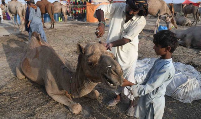 Pakistan'da Kurban Bayramı öncesi develer geleneksel motiflerle süslendi
