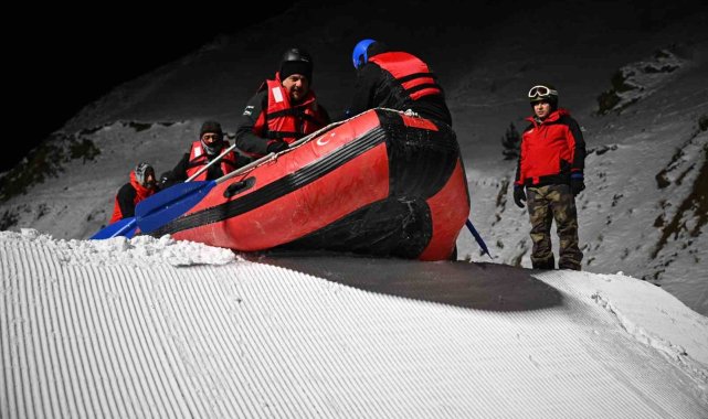Son yıllarda yıldızı hızla parlayan Palandöken Kayak Merkezi, bu kez botla kar raftingi yarışlarına ev sahipliği yaptı. 4 kişilik bota binen yarışmacılar, kar üzerinde hem heyecanlı hem de güzel anlar geçirdi. Yarışan ekiplerin içinde Erzurum Valisi Mustafa Çiftçi'de vardı.
