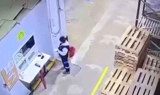 Bursa'da forklift tarafından üst üste dengesiz yerleştirilen paletler, devrildi. O esnada paletlerin yanında olan bir kadın çalışan, refleksi sayesinde paletlerin altında kalmaktan kurtuldu.