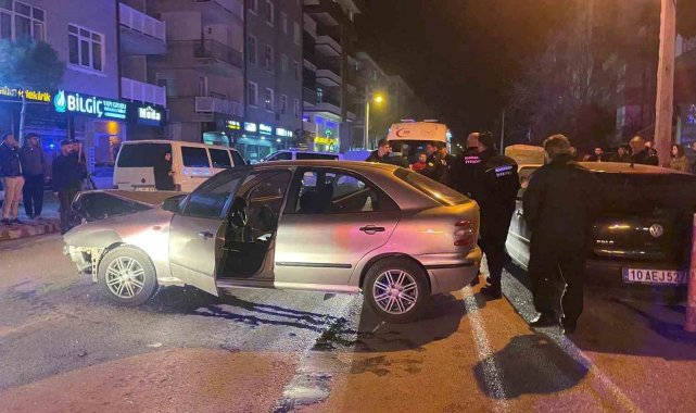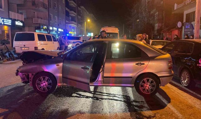 Karaman'da kontrolden çıkan otomobilin park halindeki araca çarpması sonucu meydana gelen kazada 2 kişi yaralanırken, kaza anı güvenlik kamerasına yansıdı.