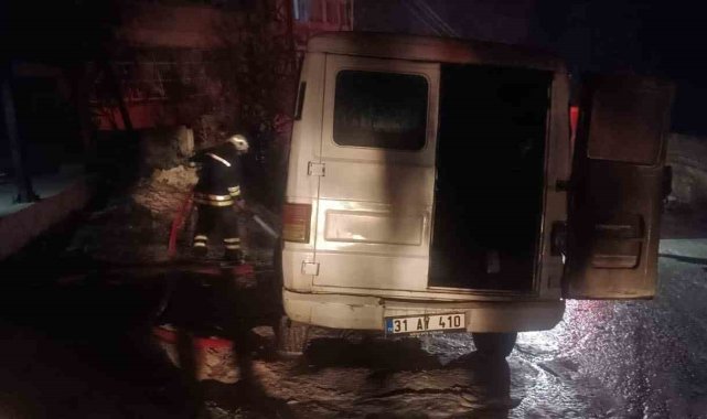 Hatay'ın Defne ilçesinde park halinde bulunan minibüs, motor kısmında çıkan yangınla alevlere teslim oldu.Yangın, Defne ilçesi Gümüşgöze Mahallesi'nde yaşandı. Mahallede park hakinde olan minibüsün motor kısmı alevlere teslim oldu. Aracın yandığını gören vatandaşlar durumu 112 Acil Çağrı Merkezi'ne bildirilmesi üzerine olay yerine Defne itfaiye ekipleri sevk edildi. Kısa sürede bölgeye gelen itfaiye ekipleri, yangına müdahaleleri sonucunda söndürüldü. Çıkan yangında araçta maddi hasar oluştu.