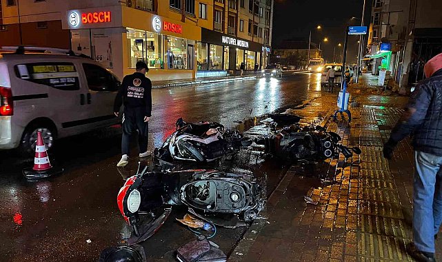 Tekirdağ'ın Muratlı ilçesinde park halindeki 3 motosiklete çarpan araç sürücüsü, hızla olay yerinden kaçtı.