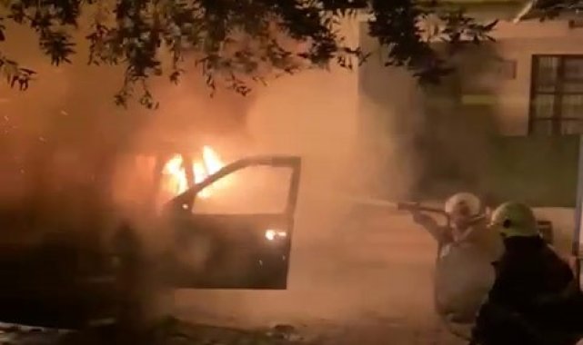 Park halindeki otomobil alevlere teslim oldu