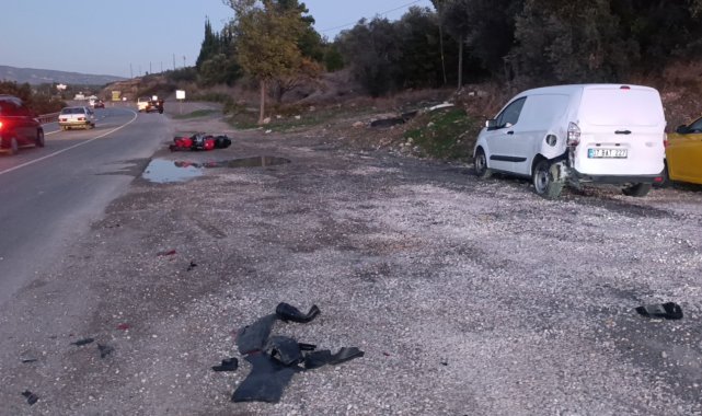 Antalya'nın Manavgat ilçesinde motosiklet, yol kenarında park halindeki hafif ticari araca çarptı. Kazada motosiklet sürücüsü yaralanırken, yola savrulan parçalara çarpmamak için manevra yapan iki otomobil de maddi hasarlı kazaya karıştı.