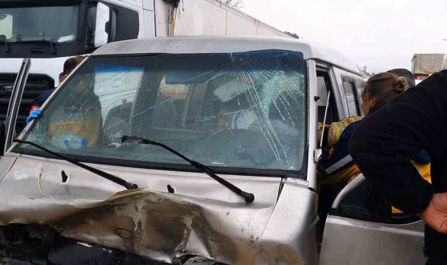 Park halindeki tıra çarpan minibüsteki 3 kişi yaralandı