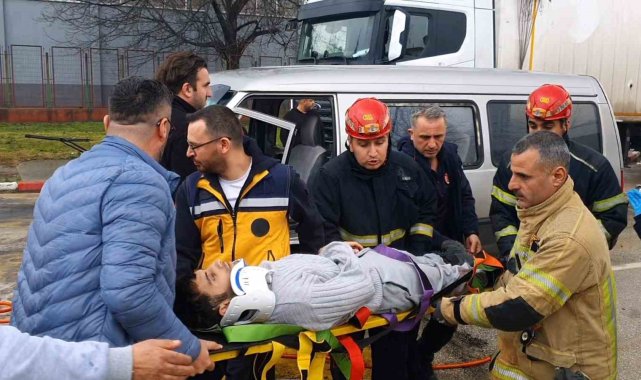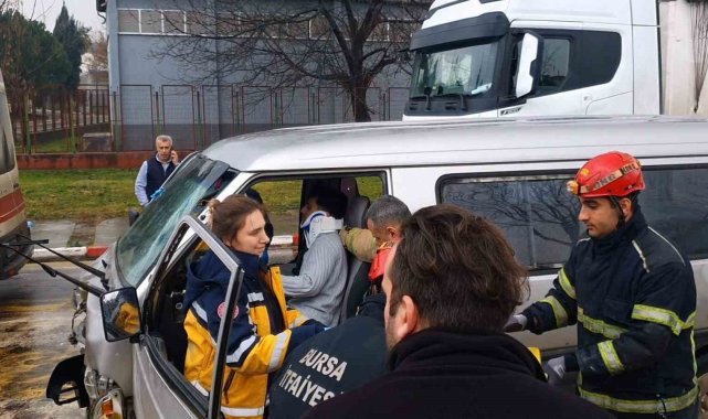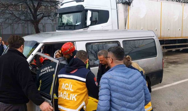 Bursa'nın İnegöl ilçesinde park halindeki tıra çarpan minibüsteki ikiz kardeşler ile 1 yolcu yaralandı.