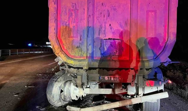 Park halindeki tıra çarpıp hurdaya dönen araç sürücüsü yaralandı