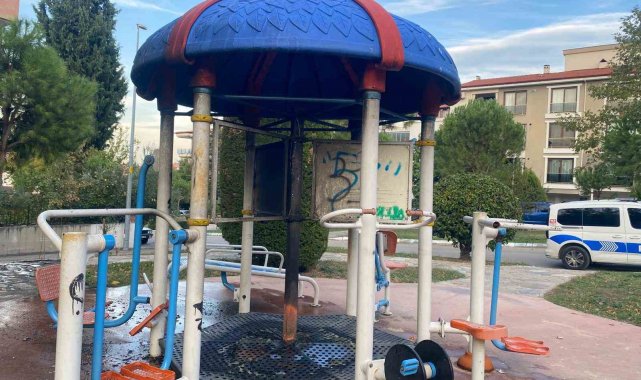 Parkta oynayan çocuklar oyuncağı ateşe verdi