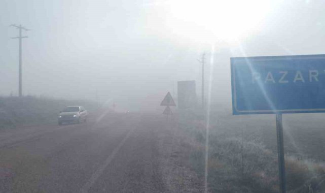 Bilecik'in Pazaryeri ilçesinde sabah erken saatlerde başlayan sis nedeniyle görüş mesafesi düştü.