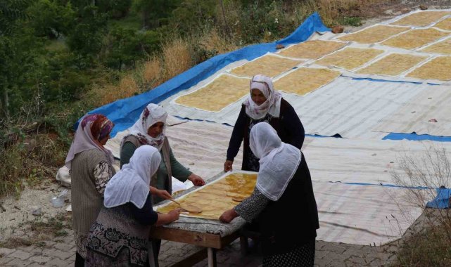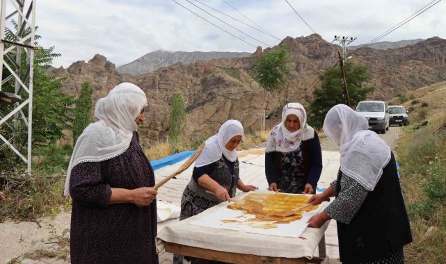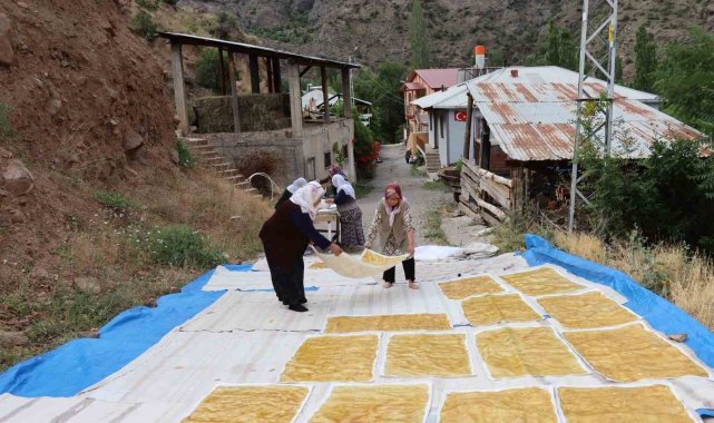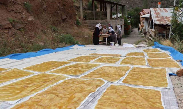 Erzurum'un Olur ilçesi Ormanağzı Mahallesi'nde dut hasadının ardından geleneksel pestil yapımına başlandı.