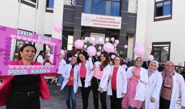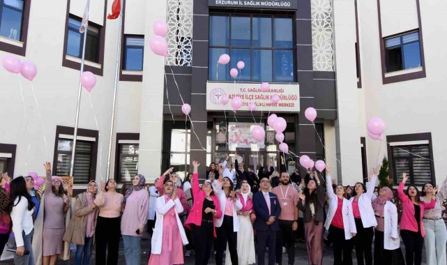 Aziziye İlçe Sağlık Müdürlüğü'nde 1-31 Ekim "Meme Kanseri Farkındalık Ayı" kapsamında kadınlara yönelik ücretsiz sağlık taraması yapıldı, Meme kanserinde farkındalık ve erken teşhisin önemine dikkat çekmek amacıyla ve kansersiz bir dünya temennisiyle 'pembe balonlar' uçuruldu.