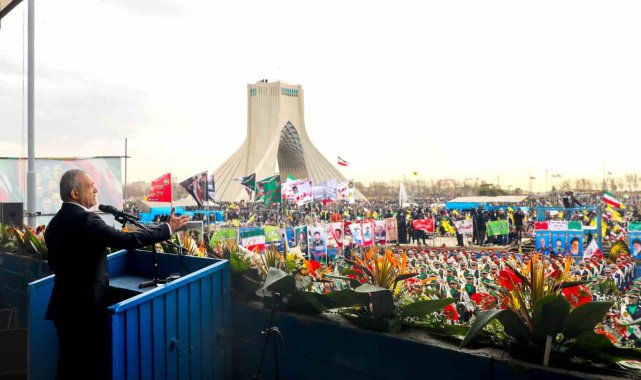 İran Cumhurbaşkanı Mesud Pezeşkiyan, İslam Devrimi'nin 47'nci yıl dönümü etkinlikleri kapsamında Tahran'daki Azadi Meydanı'nda yaptığı konuşmada, "İran, Batı'nın aşırı talepleri karşısında boyun eğmeyecek, herhangi bir saldırı karşısında da geri adım atmayacak. Buna rağmen bölge ülkeleriyle barış ve huzurun sağlanması için tüm gücümüzle etkileşim halindeyiz" dedi.