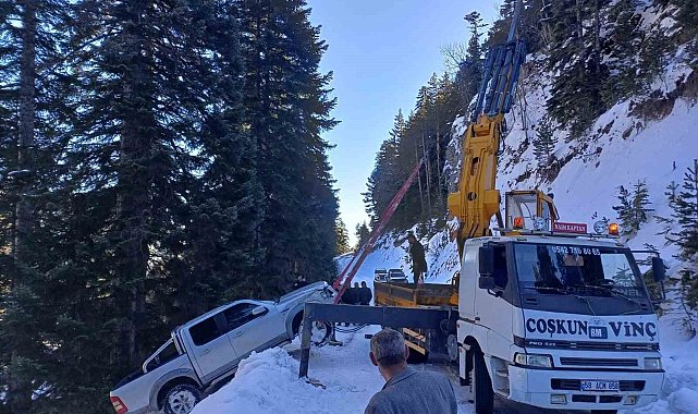 Sivas'ın Suşehri ilçesinde bir pikap, 30 metre yükseklikten dereye uçtu. Pikap sürücüsü kazayı şans eseri yara almadan atlattı.