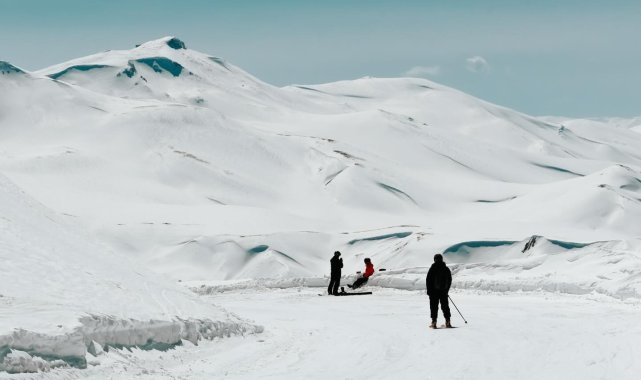 Palandöken'de bahar ayları olmasına rağmen kayak keyfi tam gaz devam ediyor, kayak severler zirve kayışında şezlong keyfi ile mola verdi.Türkiye'nin en önemli kış turizm merkezlerinden biri olan Palandöken Kayak Merkezi'nde, elverişli kar kalınlığı ve teknik altyapı sayesinde kayak sezonu 30 Nisan 2026 tarihine kadar uzatıldı. Erzurum'da şehir merkezinde bahar havası hissedilmeye başlasa da, 3 bin 200 rakımlı Palandöken Dağı'nda kıştan kalma günler yaşanıyor. Meteoroloji verilerine göre kar kalınlığının 198 santimetre civarında seyrettiği merkezde, yerli ve yabancı turistler kristal karın tadını çıkarıyor.Sezonun finali 30 Nisan'daEjder3200 yetkilileri tarafından yapılan açıklamaya göre, normal şartlarda Mart sonunda bitmesi planlanan sezon, yoğun kar yağışı ve suni karlama desteğiyle 30 Nisan 2026 tarihine kadar resmi olarak uzatıldı. Şartların elvermesi durumunda, pistlerin profesyonel sporcular ve milli takım çalışmaları için 30 Mayıs 2026 tarihine kadar açık tutulabileceği belirtilmişti."Bahar Kayak Sezonu" yoğun ilgi görüyorTürkiye'nin en uzun pistlerine sahip olan Palandöken'de, tatilciler bir yandan güneşin tadını çıkarırken diğer yandan kesintisiz kayak yapmanın ayrıcalığını yaşıyor. Ejder3200 tarafından yapılan sosyal medya mesajında "Yanlış görmediniz! Plaj kenarı değil zirvede şezlong keyfi" denildi.