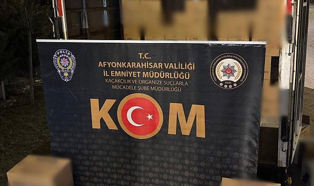 Afyonkarahisar'da polis tarafından şüphe üzerine durdurulan bir kamyonda yapılan aramada 3 milyon 500 bin adet sahte bandrollü boş makaron ele geçirildi.Edinilen bilgilere göre, Afyonkarahisar İl Emniyet Müdürlüğü ekipleri kent girişinde yaptığı yol uygulamasında şüphe üzerine bir kamyonu durdurdu. Kamyon şoförünün şüpheli hareketlerinden kuşkulanan ekipler ardından kamyonda arama yaptı. Aramada koliler içerisinde 3 milyon 500 bin adet sahte bandrollü boş makaron ele geçirildi. Olayın ardından kamyon şoförü gözaltına alınırken, olayla ilgili başlatılan soruşturmanın ise devam ettiği bildirildi.