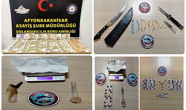 Afyonkarahisar'da meydana gelen nitelikli dolandırıcılık olayında polis 65 bin 500 eurosu dolandırılan şahsı bularak parasını iade etti.Afyonkarahisar İl Emniyet Müdürlüğü'nden son bir haftada yapılan denetimler ile meydana gelen asayiş olayları hakkında açıklama yapıldı. Açıklamada şu ifadelere yer verildi:"Çeşit suçlardan aranan 27 şahıs yakalanarak gözaltına alınmıştır. 'Nitelikli Dolandırıcılık' suçu çerçevesinde meydana gelen olayda ele geçirilen 65 bin 500 Euro mağdur şahsa teslim edilmiştir.Yapılan uygulama ve kontrollerde 4 bin 393 şahıs sorgusu, bin 511 araç sorgusu yapılmış, sorgular neticesinde 57 şahsa, 22 araca idari para cezası uygulanmıştır. 3 adet tabanca, 1 adet tüfek, 3 adet kurusıkı tabanca, 38 adet bıçak ve 85 adet fişek, 92,49 gr uyuşturucu madde, 13,5 gr uyuşturucu madde, 11 adet uyuşturucu madde, 131 adet uyuşturucu madde, 11 adet cep telefonu ve 17 bin 600 makaron ele geçirilmiştir.Ele geçen 38 adet kesici ve delici alet (bıçak) ile ilgili olarak 38 şahsa idari para cezası uygulanmıştır" ifadelerine yer verildi.