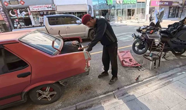 Aksaray'da caddeyi adeta sanayi dükkanına çevirip araç kaporta tamiri yaparak gürültü nedeniyle polise bildirilen şahıs, kendisini uyarmaya gelen polislere, "10 litre benzin, 150 gram yanık yağ var. Ahtım var benzin döküp cayır cayır yakacağım" dedi. Aynı şahıs, geçtiğimiz Ağustos ayında tanka benzettiği otomobiliyle askeri kamuflajlı halde yakalanarak ehliyetine el konulmuştu.Olay, Büyük Bölcek Mahallesi Büyük Bölcek Caddesi üzerinde yaşandı. Edinilen bilgiye göre, cadde üzerinde araç kaporta tamiri yapan Fatih M. (48) çekiç ve keserle kaportada yaptığı düzeltme nedeniyle gürültüye neden olurken, bu durumdan rahatsız olan vatandaşlar durumu polise bildirdi. İhbar üzerine olay yerine polis ekipleri sevk edildi. Kısa sürede adrese gelen polis ekipleri şahsı şikayet olduğu ve gürültüyü kesmesi yönünde uyardı. Ancak Fatih M. isimli şahıs kendisini şikayet eden vatandaşlardan yakınarak polis memuruna, "Reis, bu araba benim değil bir garibanın. Ben de halk adamıyım, 'Gel para pul istemiyorum' dedim. Şurada 15 dakikalık işim kaldı. Siz de idare edin. Benim herhangi bir çıkarım yok buradan" dedi. Polis memurunun, "Vatandaşlar rahatsız oluyor" demesi üzerine Fatih M., "Bu vatandaşlar nasıl bir vatandaş. Yemin ediyorum depoda 10 litre benzin var, 150 gram yanık yağ var. Benzin döküp cayır cayır yakacağım ahtım var" diye ilginç bir cevap verdi.Fatih M. isimli şahıs, geçtiğimiz Ağustos ayında da adeta tanka çevirdiği Tofaş Kartal marka aracıyla gündeme gelmiş, araç polis ekiplerince yakalanarak trafikten men işlemlerinin ardından otoparka çektirilmişti. Askeri kamuflaj ile yakalanan Fatih M.'nin ise ehliyetine 2 ay süreyle el konularak 8 bin 306 lira para cezası kesilmişti.