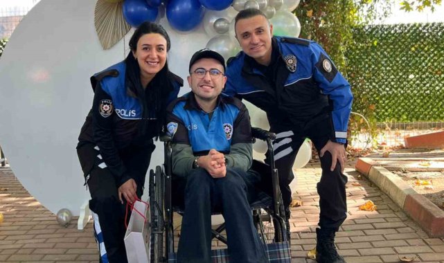 Kırıkkale'de 25 yaşındaki cam kemik hastası Buğra'nın doğum günü, polislerin düzenlediği davullu, zurnalı etkinlikle kutlandı.Kırıkkale'de yaşayan 25 yaşındaki cam kemik hastası Buğra Şahin için İl Emniyet Müdürlüğü ekiplerince özel bir doğum günü etkinliği düzenlendi. Asayiş Şube Müdürlüğü ve Toplum Destekli Polislik Şube Müdürlüğü tarafından organize edilen kutlamada, Buğra'ya polis üniforması giydirildi. Açık alanda gerçekleştirilen etkinlikte, davul, zurna eşliğinde halaylar çekildi, renkli görüntüler yaşandı.Ekipler Buğra'ya çeşitli hediyeler takdim etti. Hayalini kurduğu polis kıyafetini giyen Buğra Şahin, doğum günü pastasını keserek sevincini polis ekipleriyle paylaştı. Vatandaşların da katıldığı etkinlik, hatıra fotoğrafı çekimiyle sona erdi.