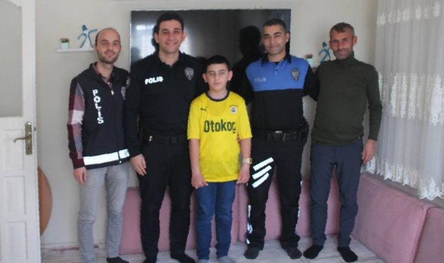 Polislerden görme engelli çocuğa forma sürprizi