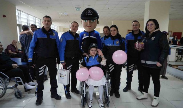 Kırıkkale'de yaşayan 10 yaşındaki fiziksel engelli Esin'in polis olma hayali, İl Emniyet Müdürlüğü tarafından düzenlenen sürpriz bir doğum günü ile gerçeğe dönüştü. Esin, mutluluğunu sevinç gözyaşlarıyla ifade etti.Kırıkkale İl Emniyet Müdürlüğü Toplum Destekli Polislik Şubesi ekipleri, doğuştan fiziksel engelli Esin'in en büyük hayalini gerçekleştirdi. Polis olma hayali kuran Esin, özel bir sürprizle unutulmaz bir gün yaşadı. Fizik Tedavi Merkezi'nde polis ekipleri tarafından düzenlenen etkinlikte Esin, polis üniformasını giydi, doğum günü pastasını kesti. Etkinlikte yer alan polis maskotu ise Esin'e ve etkinlikte bulunanlara eğlenceli anlar yaşattı. Ayrıca, Esin polis aracıyla hastane çevresinde tur atarak hayalini birebir deneyimleme fırsatı buldu. Çevredeki vatandaşlar da bu anlamlı etkinliğe yoğun ilgi gösterdi. Polis ekiplerinin düzenlediği etkinlik, yalnızca Esin'i değil, ailesini ve etkinliğe tanıklık edenleri de derinden duygulandırdı.10 yaşına giren Esin Elaldı, kendisi için düzenlenen bu özel etkinlikte mutluluğunu "Çok teşekkür ediyorum, sizleri çok seviyorum" diyerek duygularını ifade etti.Esin'in ablası Esma Elaldı (16), kardeşinin bu anlamlı gününde çok mutlu olduğunu dile getirerek, "Esin'in en büyük hayali polis olmaktı. Polis ekiplerimiz bu hayalini gerçekleştirdi. Ayrıca doğum günü kutlaması tamamen sürprizdi. Herkese çok teşekkür ediyoruz" dedi.