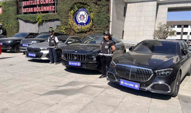 POS cihazlarıyla para aklama operasyonunda ele geçirilen lüks araçlar emniyette sergilendi