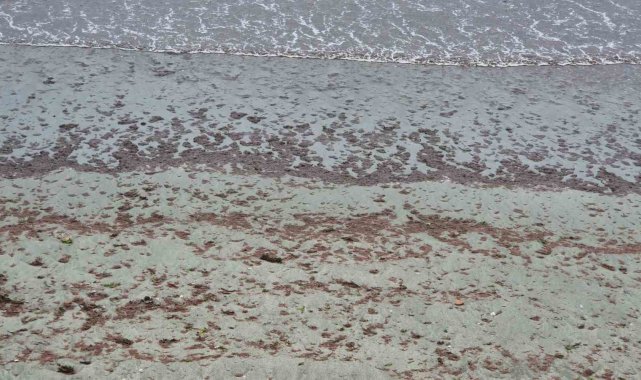 Marmara Denizi'nde etkili olan Poyraz fırtınası sebebiyle balıkçılar denize açılamazken, kıyılara kızıl yosunlar sürüklendi.