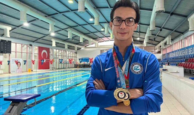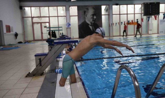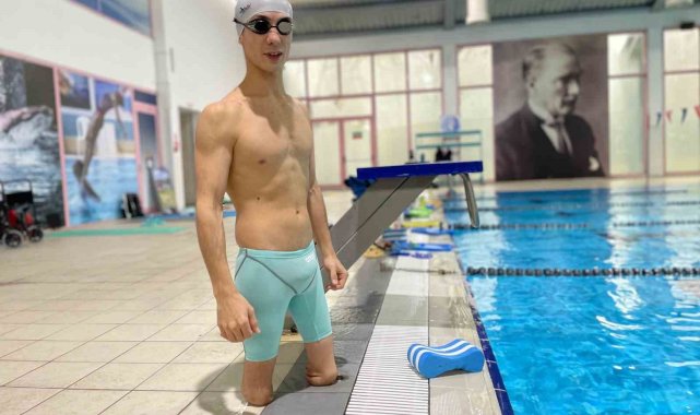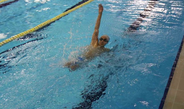 Protez bacaklarıyla 9 yıldır gittiği havuzda şampiyonluklara kulaç attı