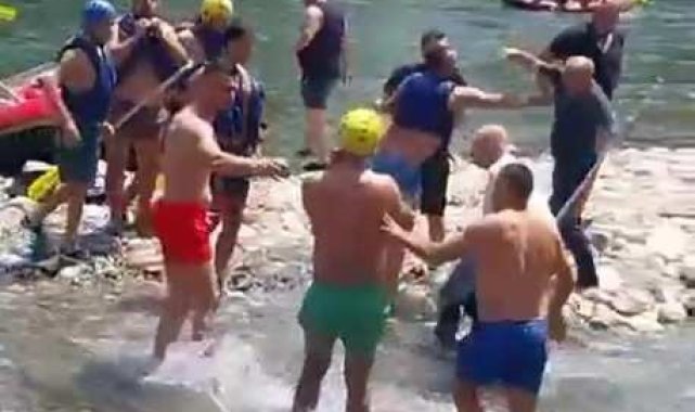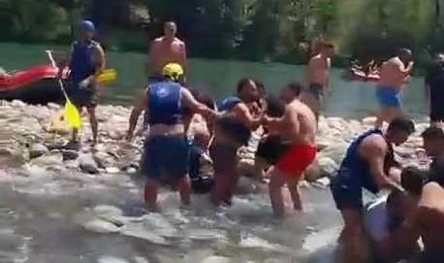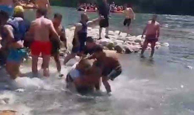 Antalya'da su sporları merkezinde can yeleği giymeyen bir grup ile kendilerini yelek giymeleri konusunda uyaran grup arasında kavga çıktı. Suyun içinde yaşanan kavgada tekme ve yumrukların yanı sıra rafting kürekleri de kullanıldı.