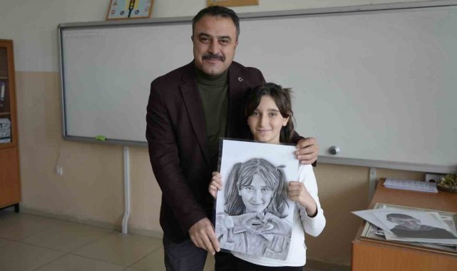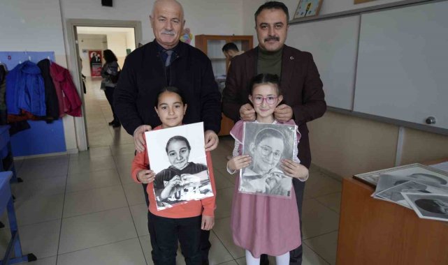 GÜMÜŞHANE (İHA) – Gümüşhane'nin Şiran ilçesinde Şehit Turgay Türkmen İlkokulu öğrencileri Türkiye'nin farklı şehirlerinde bulunan 20 ressam tarafından hazırlanan karakalem portre çalışmalarında kendi yüzlerini görünce şaşkınlıklarını gizleyemedi. Okula ismini veren şehit Turgay Türkmen'in çizilen portresi de ailesine teslim edilmek üzere idarecilere teslim edildi.