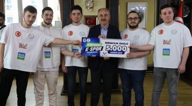 Rize Belediyesi Gençlik Merkezi ve Bilgi Evi (RİBEGEM) tarafından düzenlenen ödüllü E- Spor Turnuvası Valorant oyununda kazananlara ödülleri Rize Belediye Başkanı Rahmi Metin tarafından verildi.