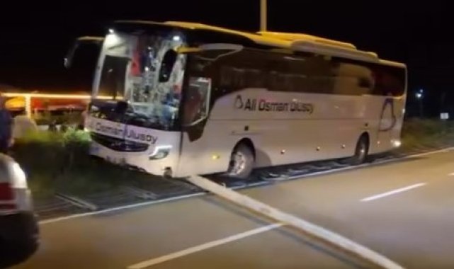 Rize'de kontrolünü kaybederek refüje çıkan şehirlerarası yolcu otobüsü, bariyerleri altına aldıktan sonra aydınlatma direğine çarparak durabildi.Kaza Rize'nin Derepazarı ilçesi Eriklimanı Mahallesi Karadeniz Sahil yolu üzerinde saat 22.30 sıralarında meydana geldi. Edinilen bilgiye göre henüz sürücüsü tespit edilemeyen 61 AU 108 plakalı Ali Osman Ulusoy'a ait içerisinde 20 yolcunun bulunduğu yolcu otobüsü Rize'nin Derepazarı ilçesinde kaza yaptı. Sürücüsünün sebebi henüz belirlenmeyen bir nedenden ötürü direksiyon hakimiyetini kaybetmesi sonucu refüje çıkan otobüs bariyerleri de altına aldı ve aydınlatma direğine çarparak durabildi. Çevredekilerin ihbarı üzerine olay yerine sağlık ekipleri ve polis ekipleri sevk edilirken otobüste bulunan 20 yolcu araçtan kendi imkanlarıyla çıktı. Artvin'in Hopa ilçesinden kalktığı ve Samsun'un Bafra ilçesine gittiği öğrenilen otobüste yaralanan olmadı. Kazanın yaşandığı Karadeniz Sahil yolunda geniş çapta güvenlik önlemi alınırken trafik tek şeritten kontrollü olarak verilmeye başlandı. Kaza yapan yolcu otobüsünden vatandaşlar ise sağlık kontrolleri yapıldıktan sonra kaza yerine gelen aynı firmaya ait bir başka otobüse nakledilerek yoluna devam etti.Olayla ilgili inceleme başlatıldı.