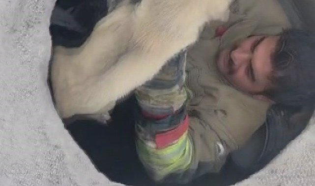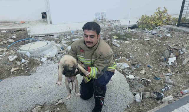 Rögarda mahsur kalan yavru köpeği itfaiye kurtardı