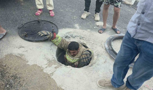 Hatay'ın Antakya ilçesinde rögar içerisinde mahsur kalan yavru köpek itfaiye ekiplerince kurtarıldı.