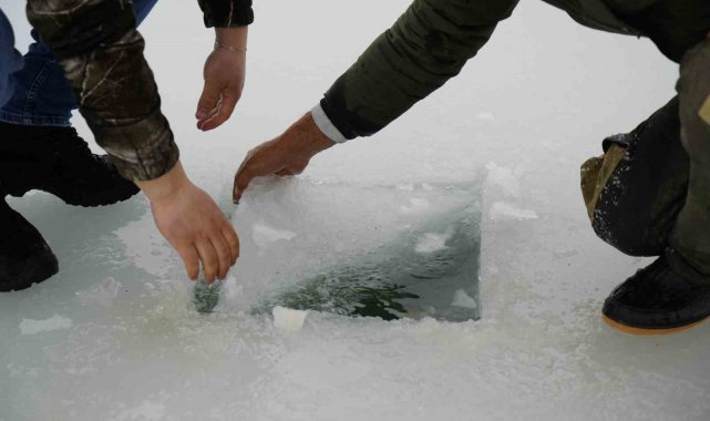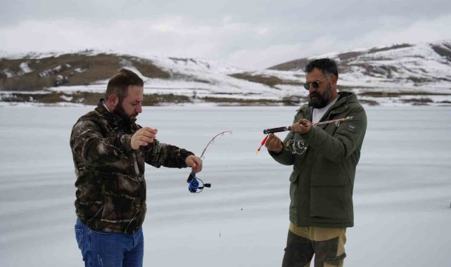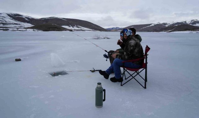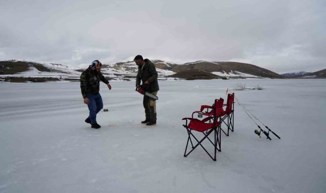 Gümüşhane'nin Kelkit ilçesindeki Sadak Baraj Gölü, dondurucu soğuklarla birlikte buzla kaplandı.Kelkit ilçesi Sadak köyü sınırlarındaki Sadak Baraj Gölü, hava sıcaklıklarının sıfırın altına düşmesiyle tamamen buz tuttu. Kalınlığı yer yer 20 santimetreyi bulan buz tabakasıyla baraj gölü kış manzarasına büründü. Kar ve buzla kaplanan Sadak Barajı sakin atmosferiyle doğa tutkunlarının ilgisini çekerken, bölgeye gelen iki balıkçı da buz tutan gölde motorlu testereyle açtıkları deliklerden oltalarını suya bıraktı."Korkutucu ama bizim için vazgeçilmez bir tutku"Baraj gölüne balık tutmanın yanında doğanın ve manzaranın keyfini çıkarmak için geldiklerini ifade eden Soner Bayram, "Boş zamanlarımızda arkadaşımla birlikte buraya gelip balık tutmaya çalışıyoruz. Balık tutmak bizim için bir keyif, bir tutku. Aynı zamanda huzur veriyor. Adrenalin sevenleri de buraya davet edebilirim. Biraz korkutucu olabilir ama bizim için vazgeçilmez bir tutku, bundan kopamıyoruz. Hava soğuk, buz kalınlığı yaklaşık 20 santimetre. Nasibimizi bekliyoruz. Balıkçılık gerçekten bir tutku işi. Burası yaklaşık bir ay önce buz tuttu ve bir ay kadar daha böyle devam eder. Sonrasında buzlar çözülmeye başlar. Biz yaz kış buraya geliyoruz. Kışın burada oturup çayımızı demliyor, keyif yapıyoruz. Yazın da ayrı bir güzelliği oluyor. Nasibimiz olursa balığımızı tutup gidiyoruz. Bu bizi mutlu ediyor. Aslında buraya sadece balık için değil, huzur ve keyif için geliyoruz. Biraz da heyecan arıyoruz. Düşme korkusu, balık tutup tutamama ihtimali. Ama hepsinden önemlisi buranın doğası ve manzarası bizi cezbediyor" dedi."Buzların kırılmasından korkmuyoruz"Balık tutmanın kendisi için büyük bir zevk olduğunu ve bu nedenle buzların kırılmasından korkmadığını dile getiren Alperen Sevinç, "Sadak bizim için bir yaşam tarzı. Doğası ve muhteşem manzarasıyla gelip burada doğayla iç içe balık tutuyoruz. Balık bizim için vazgeçilmez bir zevk. Buzlar bile bizi durduramıyor. Buz ne kadar ince olursa olsun aksiyonu seviyoruz. Kırılma korkumuz yok. Gelip burada balığımızı tutuyor, stresimizi atıyoruz. Şehrin boğucu havasından uzaklaşıp doğayla buluşmak bize mutluluk veriyor. Tuttuğumuz balıkları da evde ya da köyümüzde pişirip afiyetle yiyoruz. Korkmuyoruz, çünkü doğaya alışığız. Doğaya alışık olmayan insanlar korkabilir. Kısacası aksiyonu seviyoruz, buzun kırılmasından da korkmuyoruz. Hiçbir şey bizi yıldıramaz" diye konuştu.