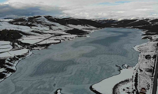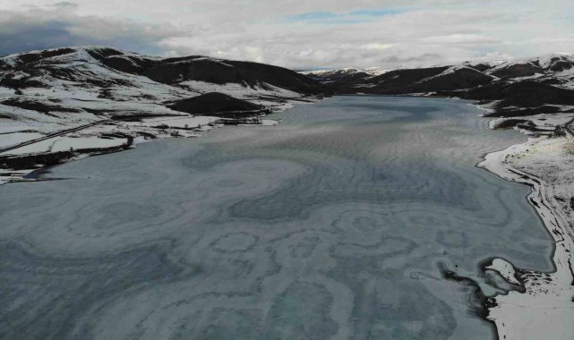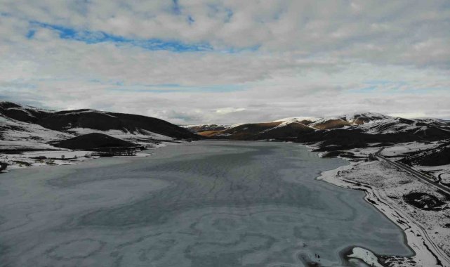 Gümüşhane'nin Kelkit ilçesindeki Sadak Baraj Gölü, dondurucu soğuklarla birlikte buzla kaplandı.
