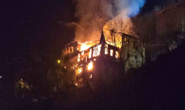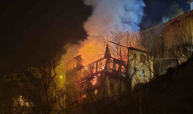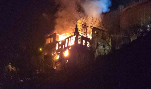 Karabük'ün Safranbolu ilçesinde yaklaşık 200 yıllık tarihi konak, çıkan yangında alevlere teslim oldu.