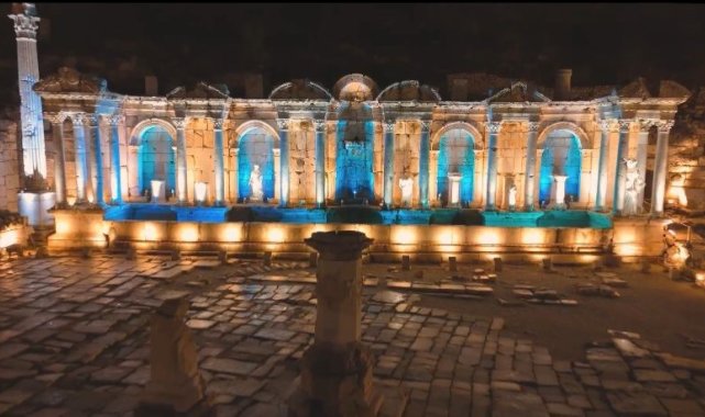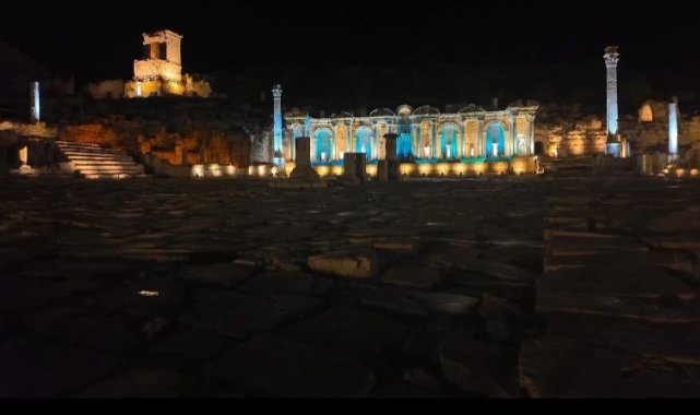 Burdur'un Ağlasun ilçesindeki bulunan "aşkların ve imparatorların şehri" olarak anılan ve gece müzeciliğine hazırlanan Sagalassos Antik Kenti ışıklandırılma işlemleri sona gelinmesinin ardından havadan dron ile görüntülendi.Ağlasun ilçesinde kurulan ve ilk yerleşim izleri günümüzden 12 bin yıl öncesine kadar uzanan antik kenti ziyaret edenlerin sayısı her geçen gün artıyor. Gündüzleri ziyaretin ardından artık ziyaretçiler antik kenti gece de ziyaret edebilecek. Bu çerçevede yürütülen çalışmalarda antik kentin ışıklandırılma işlemlerinde sona gelindi. Gece müzeciliğine hazırlanan antik kent dron ile havadan görüntülendi. Antik kentte bu yıl tamamlanacak aydınlatma projesiyle 2026 yılı yaz sezonundaki 'Gece müzeciliği' ile ziyaretçi sayının artması hedefleniyor. Geçen yıl 114 bin kişinin gezdiği Sagalassos Antik Kenti'nin bu yıl 21 Ekim itibarıyla ziyaretçi sayısı 117 bin 903 oldu. Haftanın her günü ziyarete açık olan Sagalassos Antik Kenti'ne girişi ücreti 170 TL olduğu ve Müze Kartının ise geçerli olduğu öğrenildi.