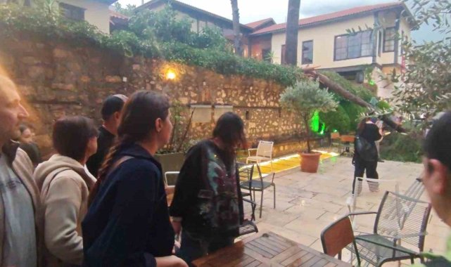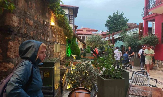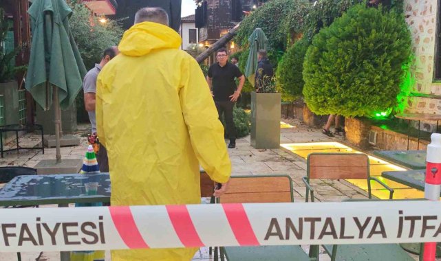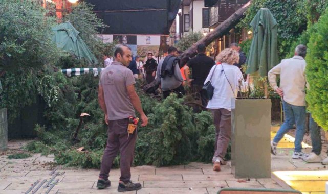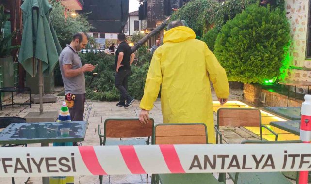 Antalya'da aniden bastıran sağanak ve şiddetli rüzgar nedeniyle devrilen ağacın altında kalan 3 kişi yaralandı.Akşam saatlerinde Muratpaşa ilçesinde aniden bastıran sağanak ve rüzgar vatandaşlara zor anlar yaşattı. Cumhuriyet Meydanı'nda bulunan tatilciler ve vatandaşlar yağış nedeniyle çığlık çığlığa güvenli bölgelere kaçışmaya başladı.Kaleiçi bölgesi Barbaros Mahallesi Hesapçı Sokak'ta ise şiddetli rüzgar sonucu bir ağaç devrildi. Bu sırada kafede oturan 3 kişi, ağacın altında kalarak yaralandı. Kimliği belirlenemeylen 2'si hafif yaralı 3 kişi çevredeki vatandaşlar tarafından ağacın altından çıkartılırken, ihbarla birlikte olay yerine itfaiye, polis ve sağlık ekipleri sevk edildi. Sağlık ekipleri yaralıları ambulansla hastaneye götürüldü. İtfaiye ekipleri devrilen ağacın kaldırılması için çalışma başlattı.
