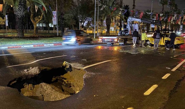 İSTANBUL (İHA) İstanbul'da gece boyu etkili olan yağış nedeniyle sabaha karşı Vatan Caddesi'nde yol çökmesi meydana geldi. Çökme nedeniyle bir ticari taksi kaza yaptı.İstanbul Fatih'te Adnan Menderes Bulvarı Vatan Caddesi'nde sağanak yağış nedeniyle saat 05.30 sıralarında yol çökmesi meydana geldi. Cadde üzerinde yaklaşık 3 metre derinliğinde, 6 metrekare genişliğinde bir çukur oluştu. Gece boyu etkisini sürdüren ve yer yer sellere neden olan yağış nedeniyle meydana gelen çökme sırasında seyir halindeki 34 TKH 16 plakalı ticari taksi çukura düşmemek için ani manevra yapınca ters dönerek takla attı. İhbar üzerine çöken yolun bulunduğu yere itfaiye, polis ve sağlık ekipleri sevk edildi. Ekiplerin yardımıyla taksinin içerisinden çıkarılan sürücü A.Y. (62) kazadan yaralı olarak kurtulurken olay yerine gelen sağlık ekiplerinin yaptığı ilk müdahale sonrası ambulansla hastaneye kaldırıldı. Ters dönen ticari taksi çekici yardımıyla bulunduğu yerden kaldırıldı. Polis ekipleri çökme meydana geldiği iki şeridi araç trafiğine kapatırken trafik tek şeritten akmaya devam etti. Polis ekipleri başka bir kazaya neden olmaması için çökmenin meydana geldiği noktada geniş güvenlik önlemleri aldı.
