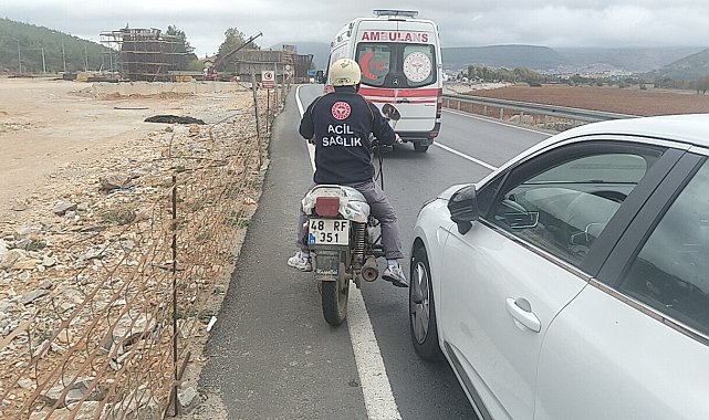Muğla'nın Menteşe ilçesinde meydana gelen trafik kazasında hafif yaralanan bir vatandaşa sağlık ekibi müdahale ederken, bir başka sağlık personeli de motosikletini hastaneye ulaştırdı.Kaza, Menteşe ilçesi Bölge Kavşağı'nda meydana geldi. Edinilen bilgiye göre, 35 COL 188 plakalı otomobil ile aynı şeritte seyir halinde olan 48 RF 351 plakalı motosiklet çarpıştı. Çarpışmanın etkisiyle motosiklet sürücüsü hafif şekilde yaralandı. Kazayı gören çevredeki vatandaşlar durumu hemen 112 Acil Çağrı Merkezi'ne bildirdi. İhbar üzerine olay yerine sağlık ve polis ekipleri sevk edildi. Bölgeye ulaşan sağlık ekipleri, yaralıya olay yerinde ilk müdahaleyi yaptıktan sonra, tedavisinin sürdürülmesi amacıyla Muğla Eğitim ve Araştırma Hastanesi'ne sevk etti.Yaralının hastaneye götürülmesinin ardından, görevli bir başka sağlık personeli, kazazedeye destek olmak amacıyla örnek bir davranış sergiledi. Personel, kaza yapan motosikleti güvenli bir şekilde hastaneye kadar götürdü.