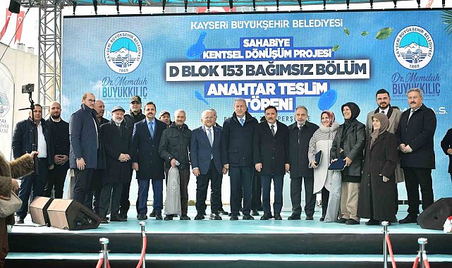 Kayseri Büyükşehir Belediye Başkanı Dr. Memduh Büyükkılıç, TBMM Milli Savunma Komisyonu Başkanı Hulusi Akar ve Kayseri Valisi Gökmen Çiçek ile birlikte daha dirençli bir Kayseri vizyonu doğrultusunda kentte atılan en önemli adımlardan biri olan Sahabiye Kentsel Dönüşüm Projesi kapsamında, ilk etabın son bloğu olan D Blok'ta 153 bağımsız bölümün anahtar teslimini gerçekleştirdi.
